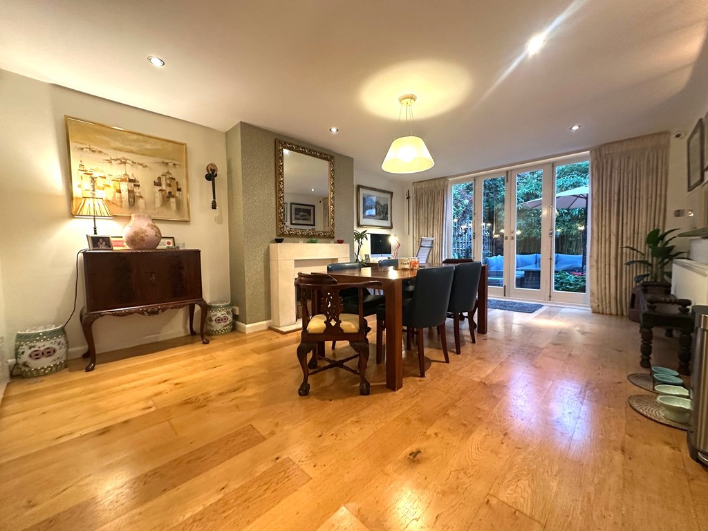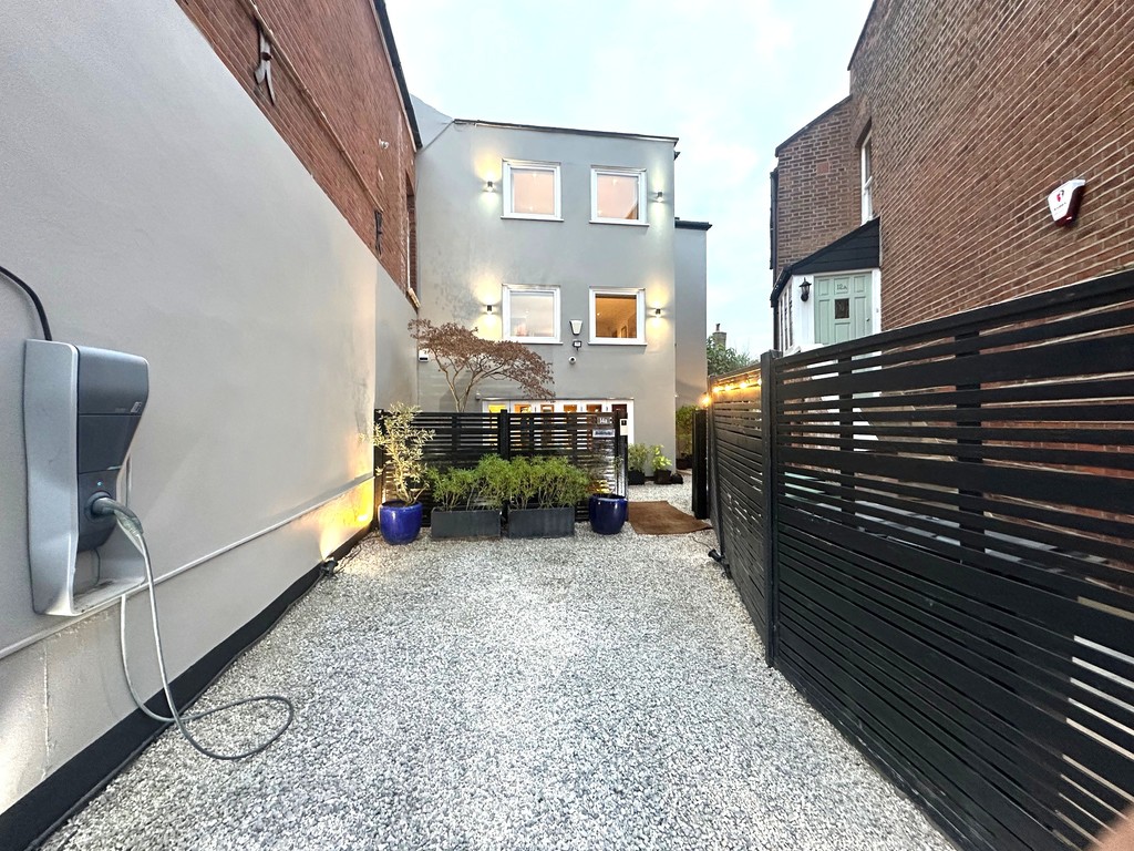 Set behind a discreet gated driveway is this Stunning Semi-Detached House Split Over Three Floors and consisting of 4 bedrooms, 2 bathrooms with 1 en-suite to master bedroom, Large Separate Lounge with fitted bookcases/shelves providing a luxurious relaxing setting, Huge Dining Room with feature fire-place Open Plan with a Contemporary Fully Equipped Kitchen with integrated appliances, Separate Guest WC, Large Wrap around Garden Rear to side and front, Driveway with off street parking for 2 cars & Electric Car Charging facility.
